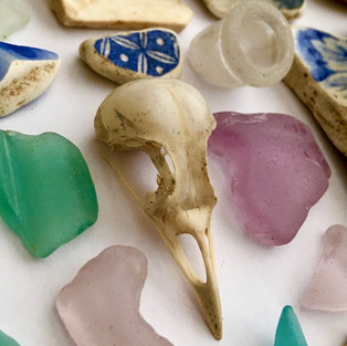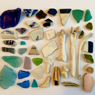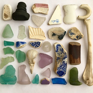 Rare coloured glass and patterned pottery are always exciting. I can spend an afternoon filling my pockets, then at home later, I empty them onto white paper and examine the haul.